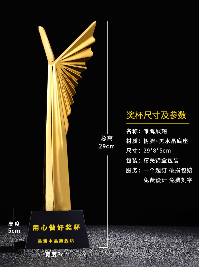 雏鹰展翅 镀金奖杯 创意奖杯专业定制 企业员工颁奖礼品订制