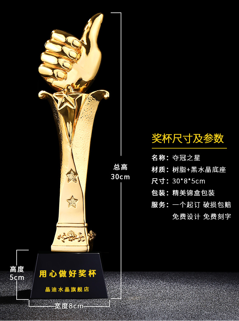 夺冠之星 镀金奖杯 创意奖杯专业定制 企业员工颁奖礼品订制