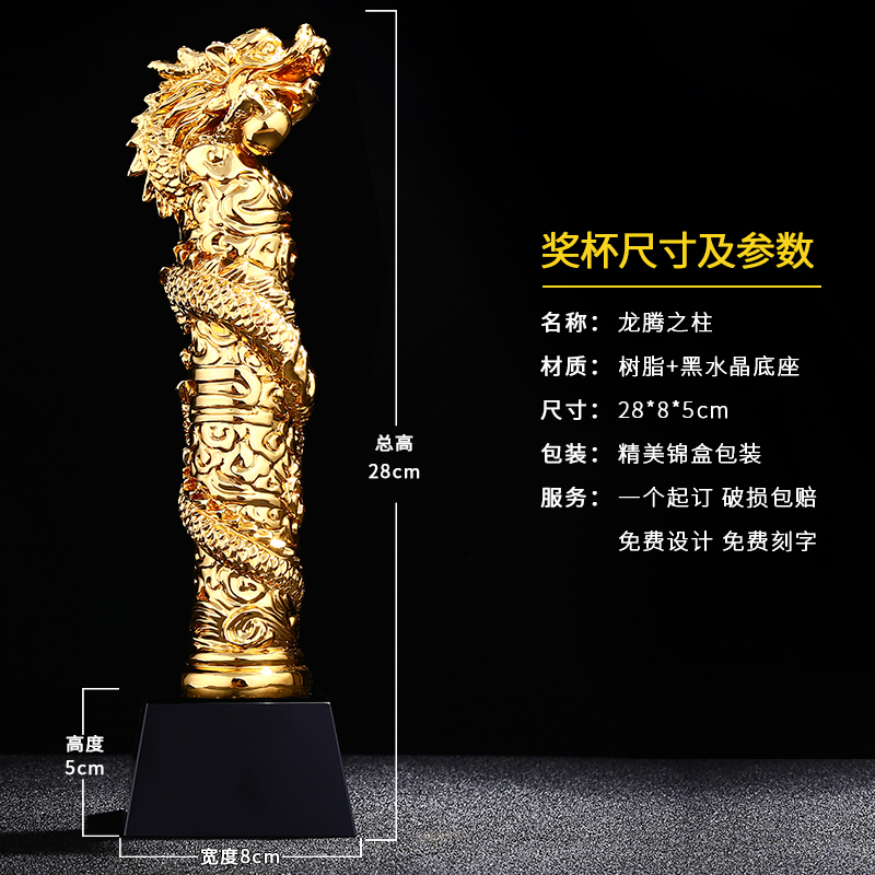 龙腾之柱镀金奖杯 创意奖杯专业定制 企业员工颁奖礼品订制