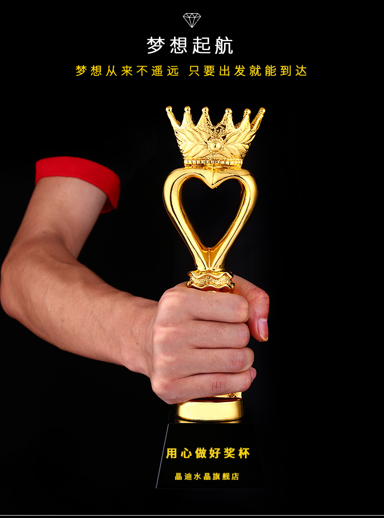 荣誉皇冠镀金奖杯 创意奖杯专业定制 企业员工颁奖礼品订制
