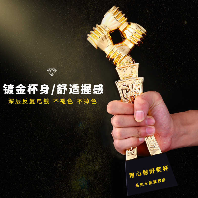 携手共赢 镀金奖杯 创意奖杯专业定制 企业员工颁奖礼品订制